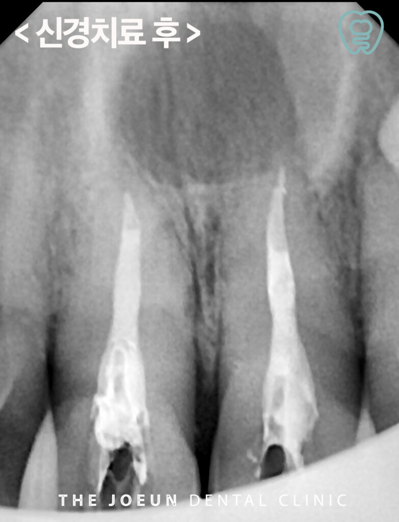 낭종 적출술을 진행하기 전 신경치료를 먼저 완료하였습니다.