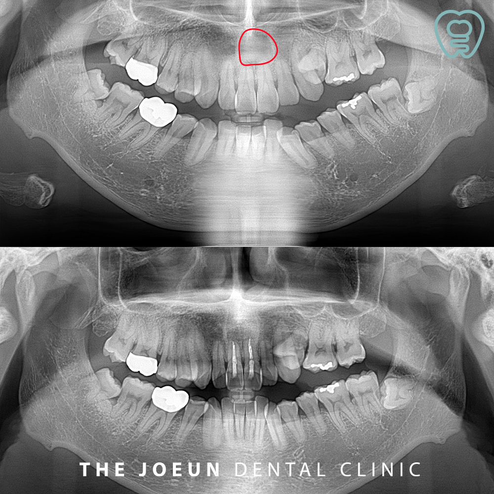 오늘은 위쪽 앞니 입천장 부위 낭종을 적출하신 환자분을 소개해 드리려고 합니다.