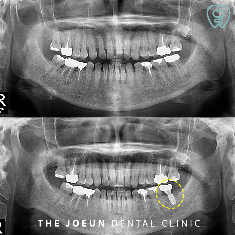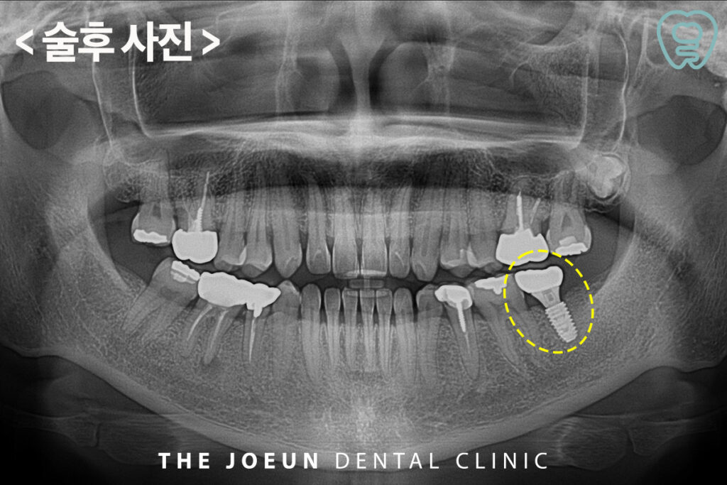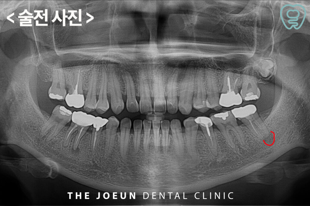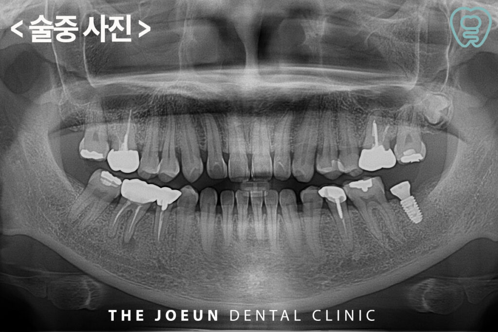 오늘은 신경관과 가까이 있는 치아 뿌리의 염증으로 인해 발치 후 충분한 기간을 기다려준 뒤 임플란트를 식립하신 환자분을 소개해 드리도록 하겠습니다. 환자분께서는 전체적인 검진을 위해 내원하셔서 왼쪽으로 식사를 하실 때 간혹 찝찝한 느낌은 있었지만 큰 불편함은 없으셨다는 말씀을 해주셨는데요.