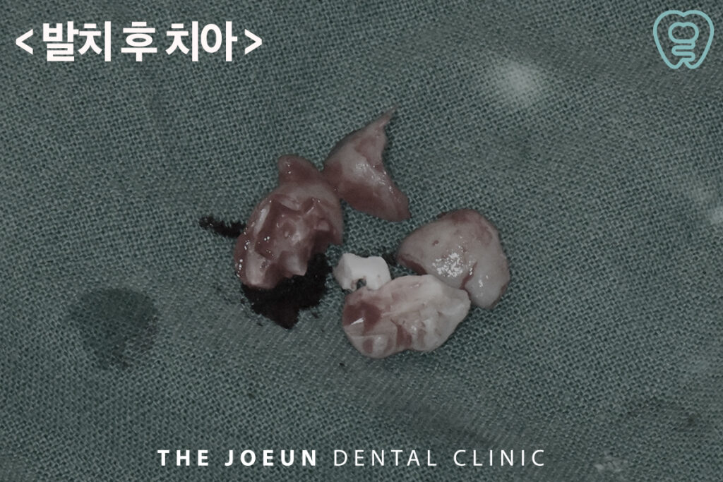 가장 안쪽에 누워 있는 사랑니이다 보니, 모두 조각을 내어 발치를 진행하였습니다.